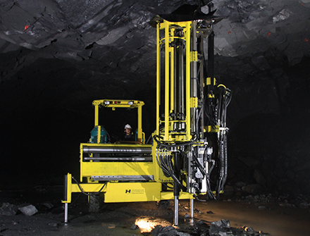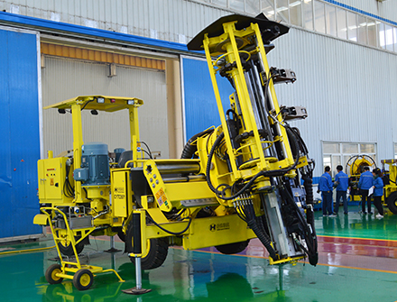CYTC89Y全自動(dòng)液壓采礦鉆車是礦山采用無底柱崩落法采礦工藝的設(shè)備,該車具有前俯20°、后仰80°,平移鉆桿、360°靈活旋轉(zhuǎn)等功能,定位系統(tǒng)可靠,鉆孔精度高;該車配備機(jī)械手自動(dòng)換桿裝置,儲(chǔ)桿器內(nèi)可存放17根鉆桿,鉆孔深度可達(dá)30米;該車配備高靈敏性的防卡釬裝置,在對(duì)一些破碎帶及斷層掘進(jìn)時(shí),降低了鉆頭、鉆桿卡在孔內(nèi)的風(fēng)險(xiǎn);該車采用無線遙控,使采礦作業(yè)更加安全便捷;該車配備自主研發(fā)的HYG500型液壓鑿巖機(jī),在單次沖擊功與進(jìn)口產(chǎn)品相當(dāng)?shù)那闆r下,沖擊頻率達(dá)60-75Hz高于同類產(chǎn)品。